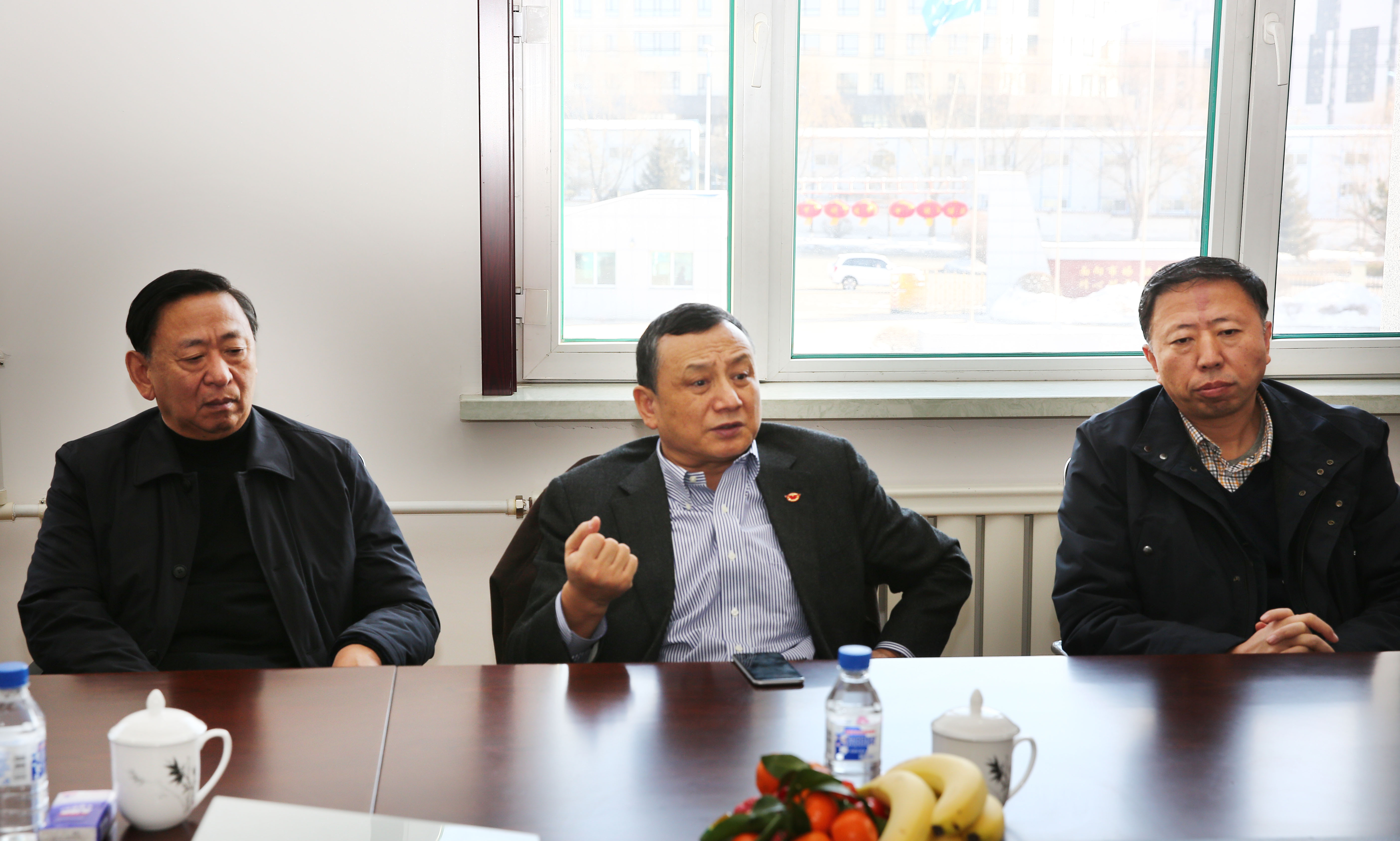 2016年2月3日,吉林亚泰集团公司董事长、总裁宋尚龙,副总裁刘晓峰、田奎武,总裁助理、医药投资公司总经理王劲松,党委副书记、人力资源部总经理李斌,总裁办副主任耿标,以及延边州政府副州长兰公海、敦化市市长周金星等一行8人,莅临亚泰东北亚药业慰问员工,并带来慰问品。宋总一行首先与公司相关人员座谈,听取汇报,征询意见,并对2016年工作提出要求。