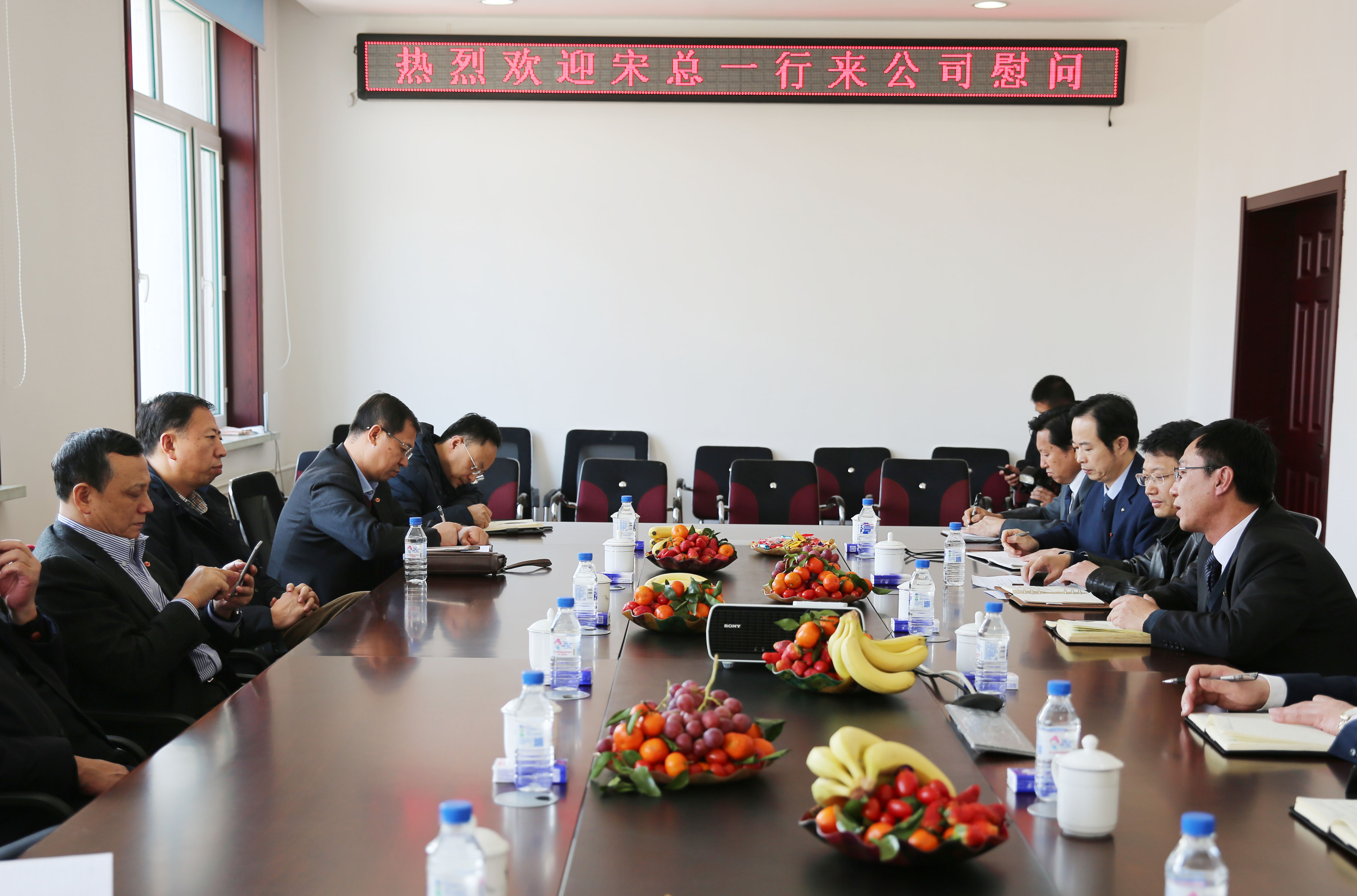 公司总经理王树堂向宋总等领导汇报了2015年企业经营状况及2016年经营计划,医药销售公司总经理郭学伟汇报了销售工作。